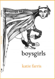Rather than the sort of tales in which we can point to a specific moral lesson, the stories in boysgirls offer more possibilities than conclusions. And while we sometimes leave these beings on the cusp of metamorphosis, Farris’ word selection and lines like incantations reverberate throughout memory and dream. Fans of Matthea Harvey’s hybrid mermaids will embrace these characters, and readers of Angela Carter will bask in these mythic inventions/inversions that point to gender identity and sexual agency. With its immersive magic and unforgettable imagery, life surges through this tiny, gorgeous book that rewards and re-rewards with each tumble down its rabbit hole.