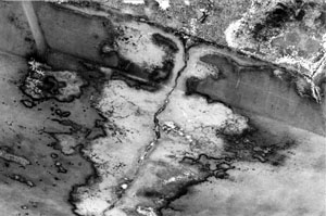 in boggy ground away from oxygen