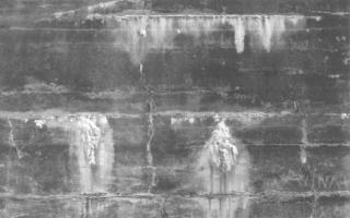 Brown oil drips from the cracks in the ceiling
